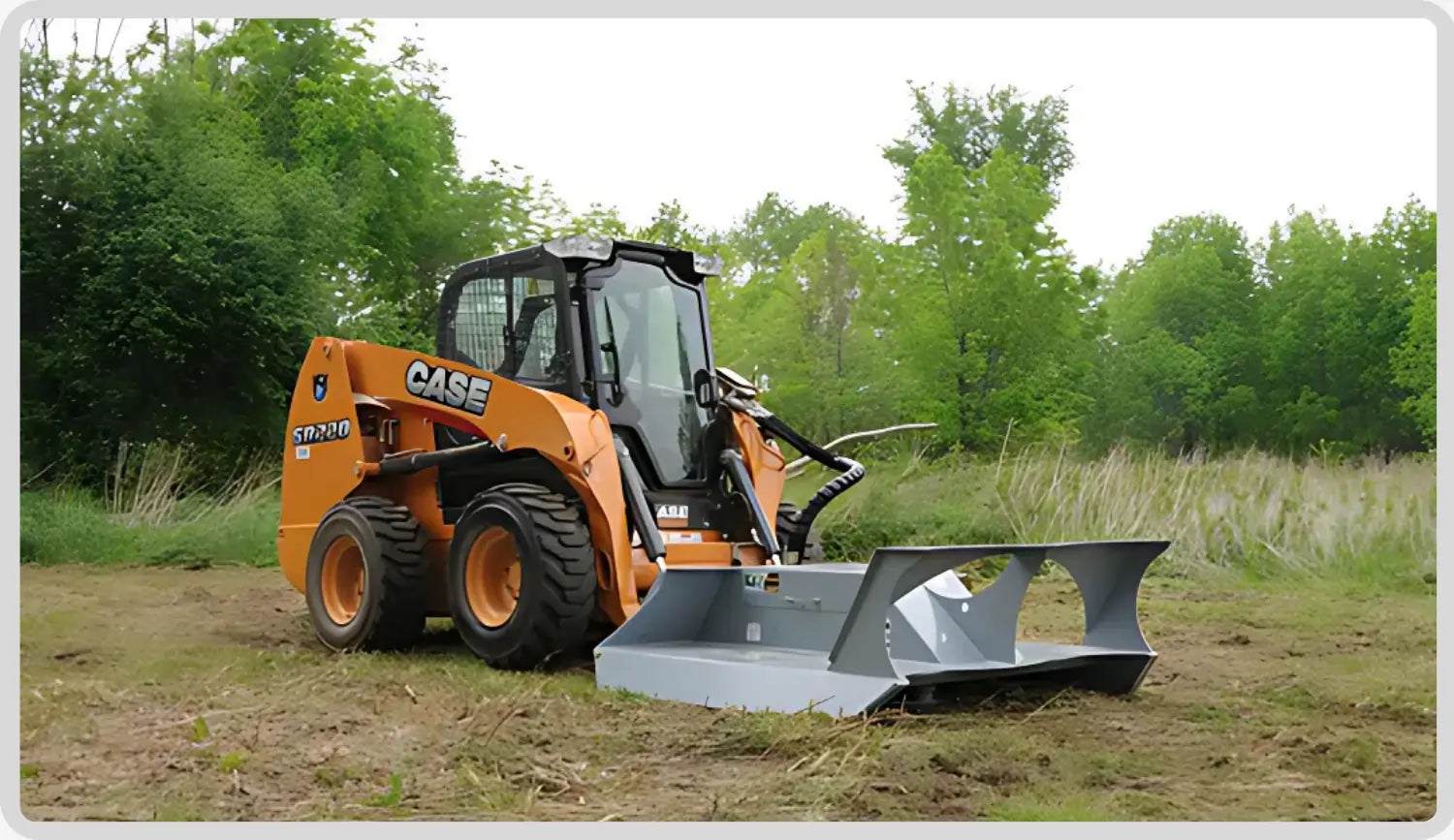 The Baumalight CF560 Open Front Skid Steer Rotary Brush Cutter delivers extreme land-clearing performance with a rugged 70” cutting path and four AR400 steel blades. Built with a durable ¼” steel deck, this brush cutter takes down trees, thick brush, and overgrowth with ease. Its 60” open mouth design allows for sawing action on larger trees, while the front push bar with double arch design funnels tall brush directly into the blades. A rear chain curtain provides protection and clean debris discharge, making the CF560 ideal for trail blazing, roadside clearing, and heavy-duty vegetation control.