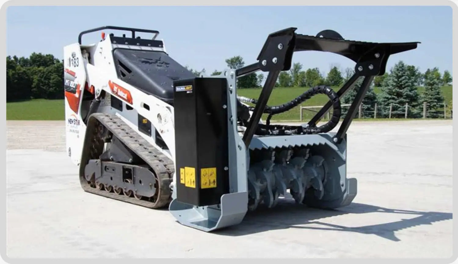 The Baumalight MS530B Fixed Tooth Mulcher is built specifically for Bobcat MT-series Mini Skidsteers, with a longer frame and custom mount plate to accommodate Bobcat’s oversized Quickattach handles. This heavy-duty brush mulcher for Bobcat mini skidsteers features a spiral-pattern rotor with hardened V-Notch teeth, armored hydraulic hoses, and an integrated push bar for bending and clearing thick brush. Designed for precise cutting with adjustable skid shoes, the MS530B delivers serious power through a reinforced belt drive and bent axis piston motor. A case drain is required—check compatibility before operating. Ideal for land clearing, overgrowth removal, and property maintenance.