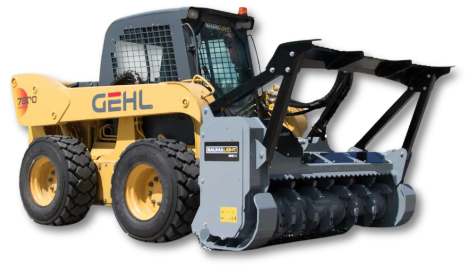 Maximize your skidsteer's potential with the Baumalight MS972 Fixed Tooth Mulcher. With a robust 72” rotor and 84” path, it offers unmatched mulching efficiency. Features replaceable wear plates and a compact frame for optimal weight distribution, enhancing maneuverability and productivity on any site. Ideal for managing dense vegetation and varying limb sizes.