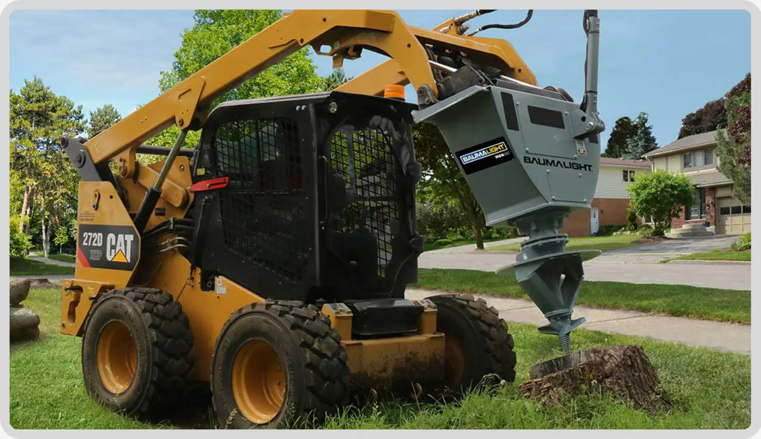 The RSS780 Stump Planer is a heavy-duty stump grinding attachment for skid steers, engineered for efficient, low-mess performance in tight urban areas or sensitive job sites. Designed with a universal skid steer plate mount, this RSS skid steer stump planer runs at a low RPM, keeping wood chips contained and minimizing cleanup time. Unlike high-speed cutting wheels that demand more power and create fine dust, the RSS780 delivers fast, aggressive stump removal while producing coarse mulch that benefits surrounding vegetation. With a hardened, replaceable tip and sharpenable cutting blades, this low RPM stump planer tool offers long-lasting durability and high efficiency even with smaller skid steer loaders.