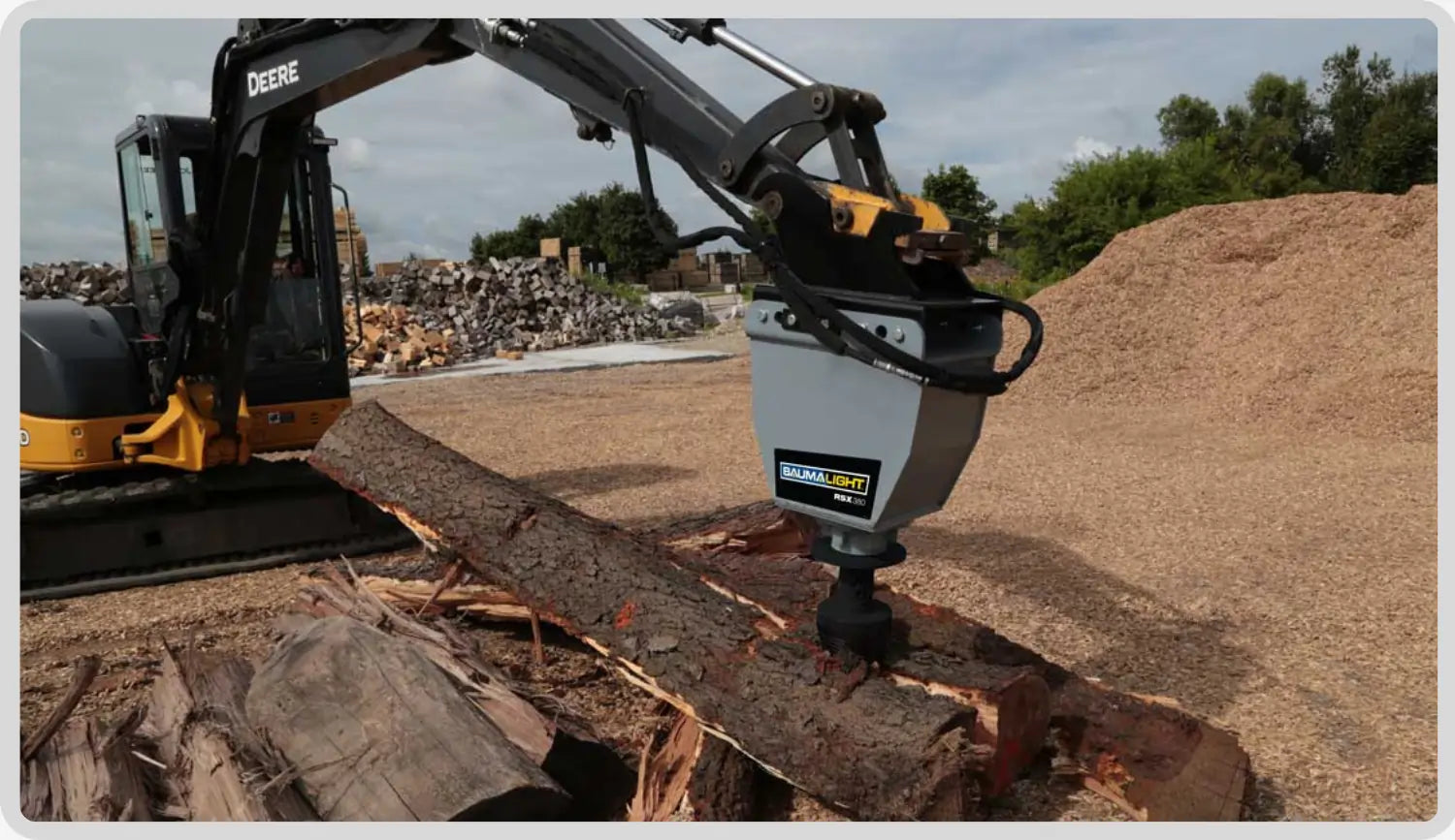 The Baumalight RSX780 Log Splitter is a heavy-duty, excavator-mounted wood splitter built to handle logs up to 12 to 20 feet long with ease. Engineered with a bolt-on excavator mount, this log splitter uses a hydraulically driven planetary drive to generate high torque directly to the splitting bit. Its dual helical spiral blades and hardened tip bore deep into tough wood, delivering maximum splitting force. Mounted on a 2" hex shaft or flange, and protected by an integrated drive shield, the RSX780 operates both horizontally and vertically, making it a powerful and versatile solution for serious log processing in the field.