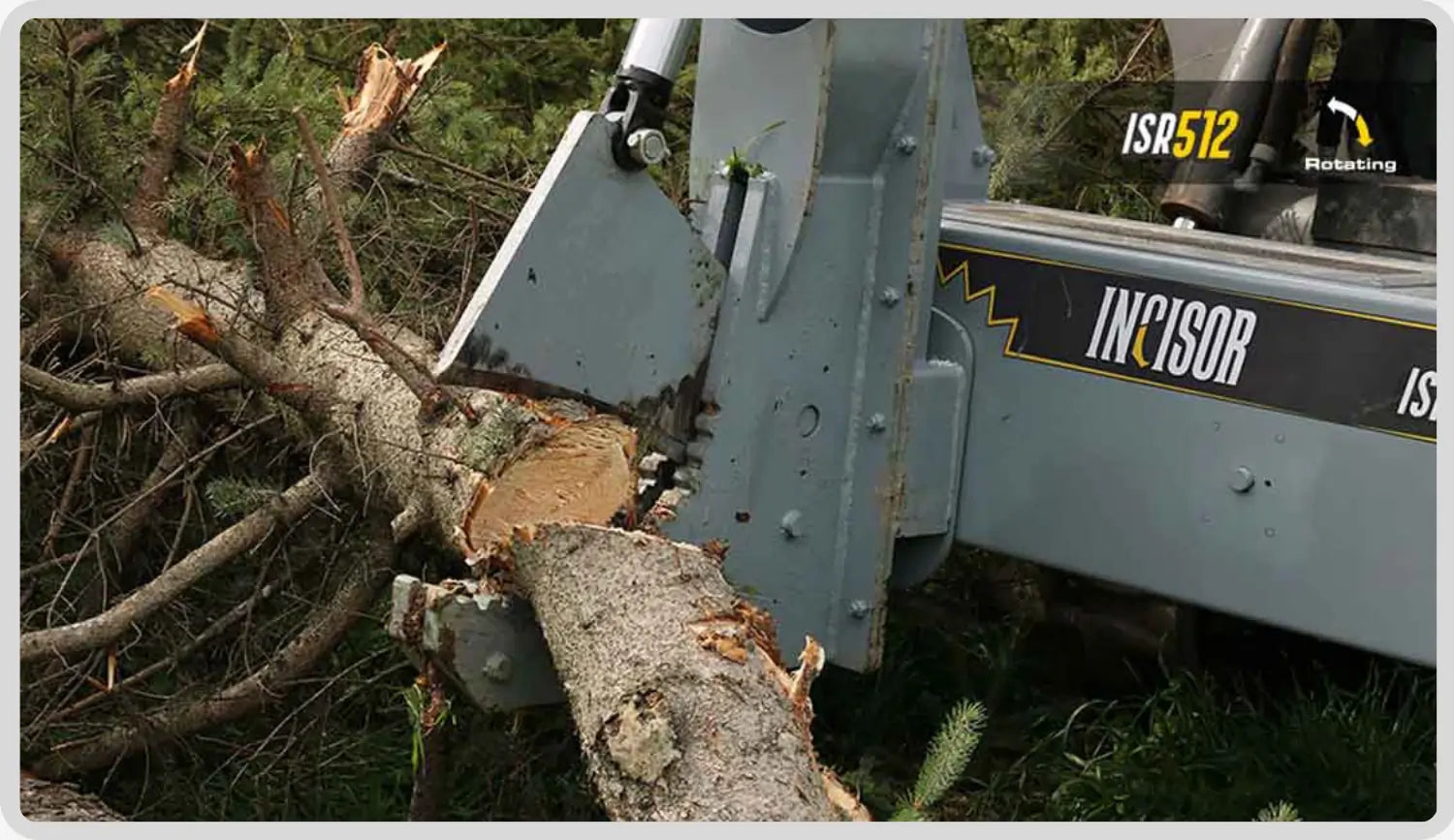 Clear large trees and thick brush with confidence using the Baumalight ISR512 Rotating Skid Steer Tree Shear, designed for 5,000–8,000 lb. class skid steers. With a 90-degree rotating head and a 12-inch cutting capacity, this powerful attachment offers unmatched control and cutting versatility. Ideal for felling trees upright or cutting limbs horizontally, the ISR512 features in-cab rotation control and a built-in brush bar to manage debris and guide limbs into the shear. Tackle dense forestry work, land clearing, or right-of-way maintenance with professional-grade precision.