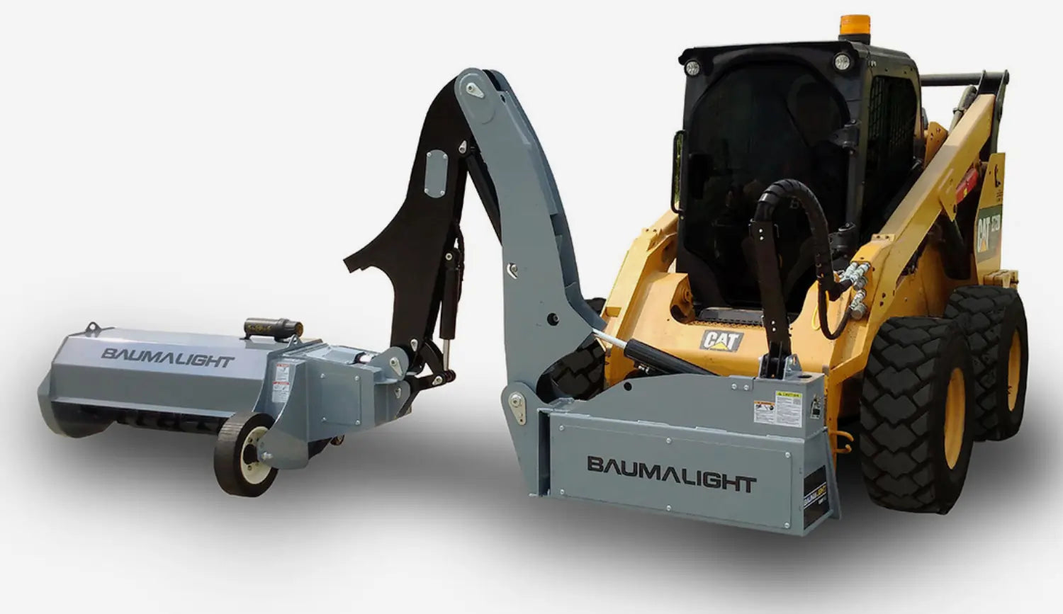 Safely mow ditches, roadsides, and fence lines with Baumalight's heavy-duty SWF580 Boom Mower for Skid steers. With a 14-foot reach and adjustable boom and stick design, this mower features a 48" wide head with 200 series flail teeth, and a handling brush up to 2" diameter. Designed for carriers weighing 8,000+ lbs, it folds for safe transport between projects.