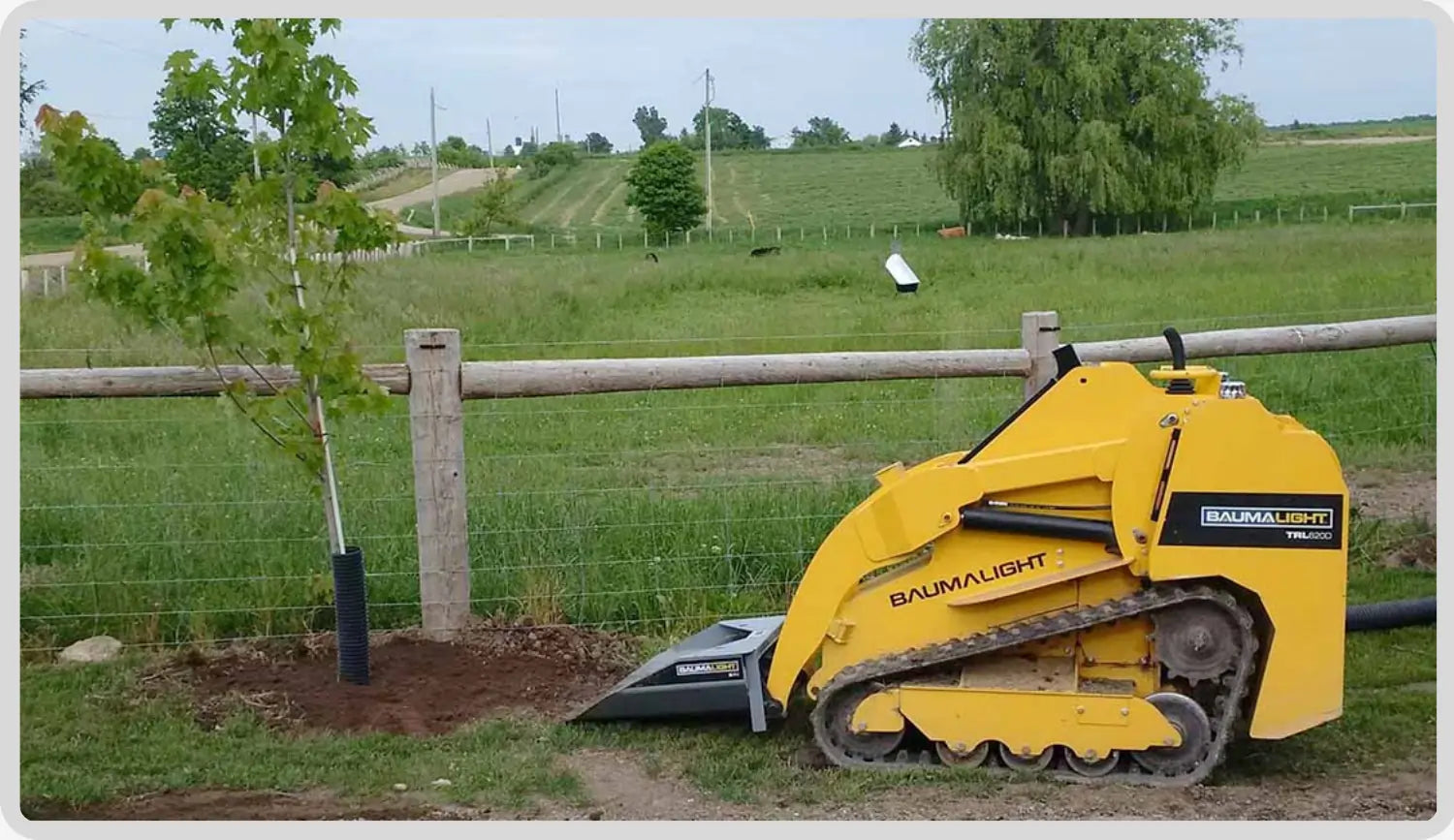 Move and transplant small trees with ease using the Baumalight X4M Tree Scoop, designed for mini skid steers. Built from 1/4" high alloy steel, the X4M features a hardened digging edge and reinforced frame for durability in tough soil conditions. Its open design gives operators excellent visibility while planting or relocating trees. The X4C model includes a custom Bobcat MT52 plate for seamless compatibility. Ideal for landscapers, nurseries, and property owners who need efficient tree moving capabilities on compact carriers.